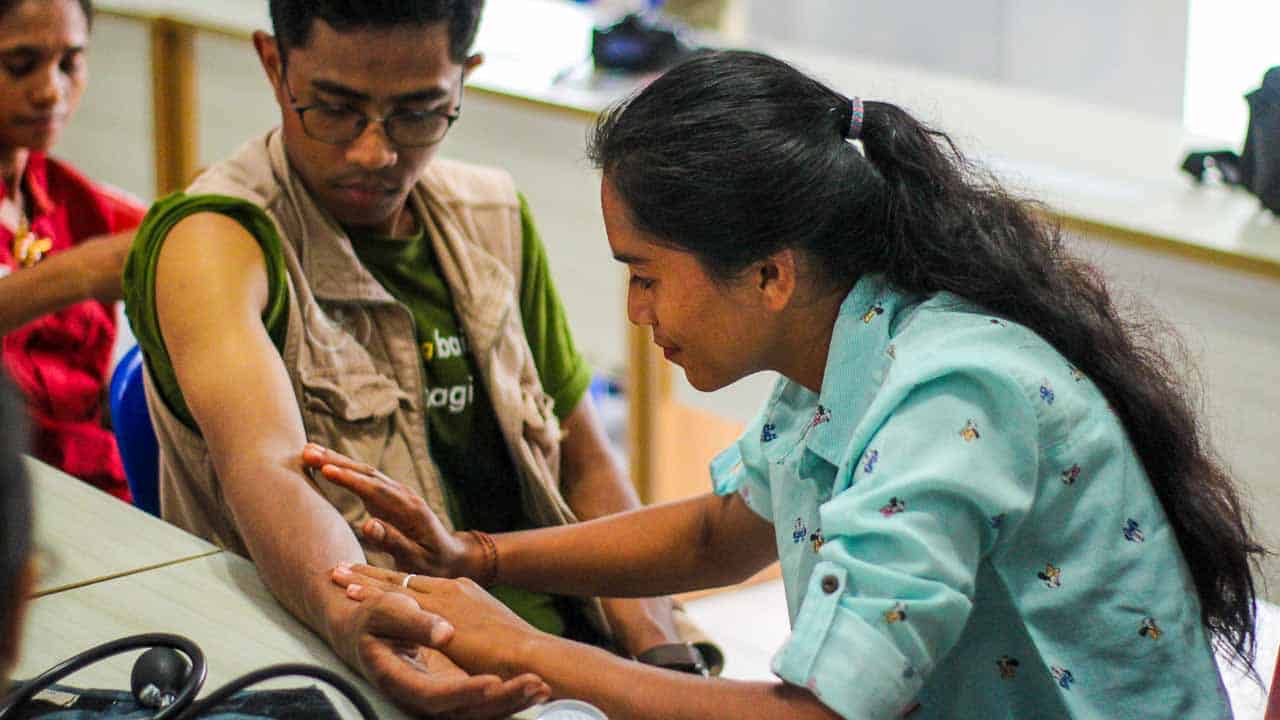 As part of the Primary Medical Care program, Katerina and eight other "Kawan Sehat" health workers participate in this unique pilot experience. These women teachers can measure a patient's blood pressure and give appropriate medical treatment in case of hypertension.