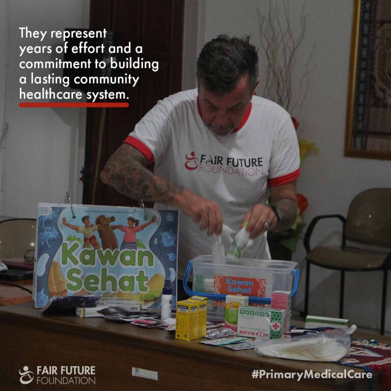 During training sessions, Kawan Sehat health agents read, write, annotate, and practise every medical step under close supervision. The manuals then follow them into homes, schools, and community gatherings, becoming references when a child arrives sick in the middle of the night. Checklists support clinical decisions when treating fevers, coughs, skin infections, or wounds.