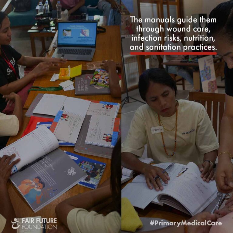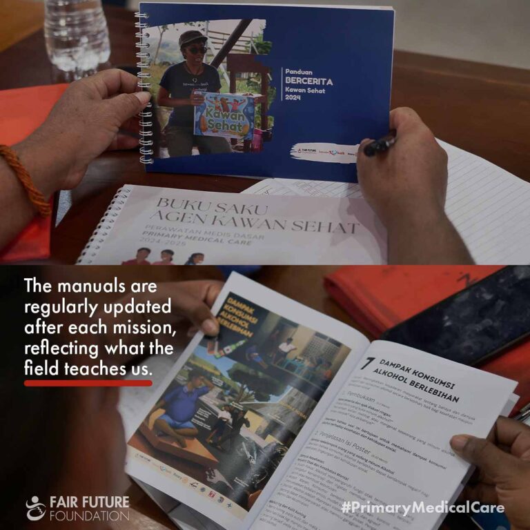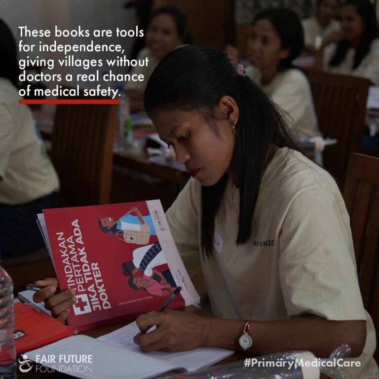 In East Sumba, medical manuals are not academic objects. They are practical tools that women carry through dust, rain, and long distances to deliver care where no doctor exists. These books were created by the medical teams of Fair Future Foundation, together with Kawan Baik Indonesia, and are built entirely on field experience and refined mission after mission.