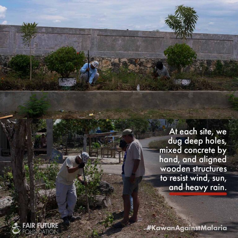 At our base camp in Waingapu, the dedicated teams of Fair Future and Kawan Baik Indonesia are hard at work. With limited resources, every plank, screw, and rope is a treasure that must be adapted to our needs. Our commitment to fighting malaria leads us to prepare by hand because no large machinery can assist us here.