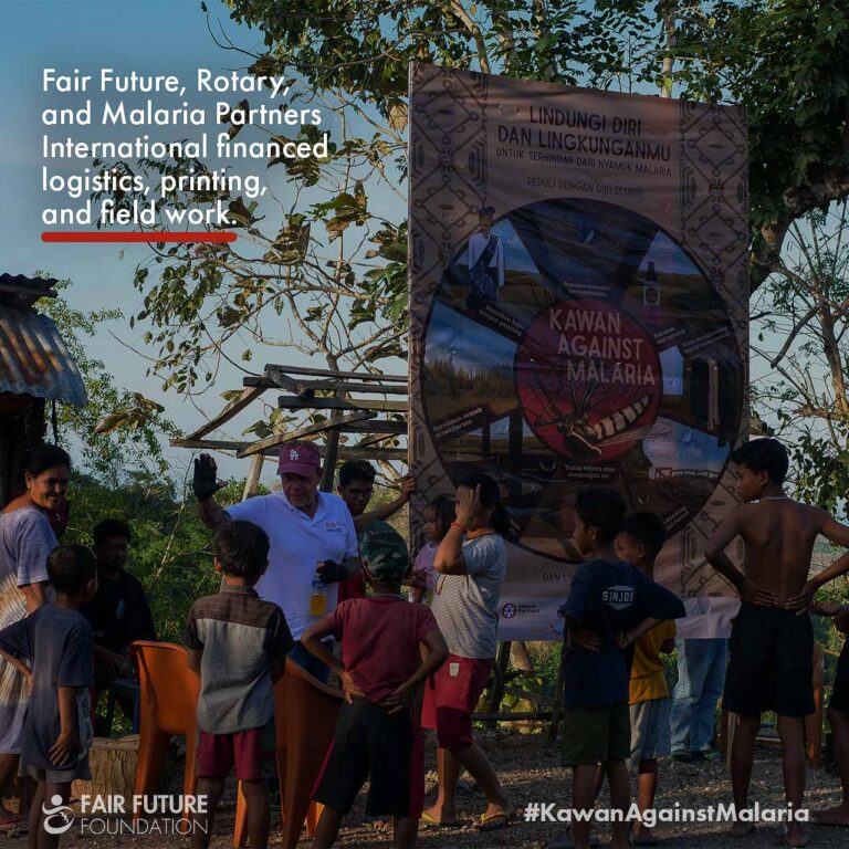 Working under the beams of headlamps till midnight, we mixed concrete by hand. Under the Kawan Against Malaria program, with the support of Rotary and Malaria Partners International, these towering billboards now stand resilient, conveying vital information to thousands of families in areas with limited medical resources.
