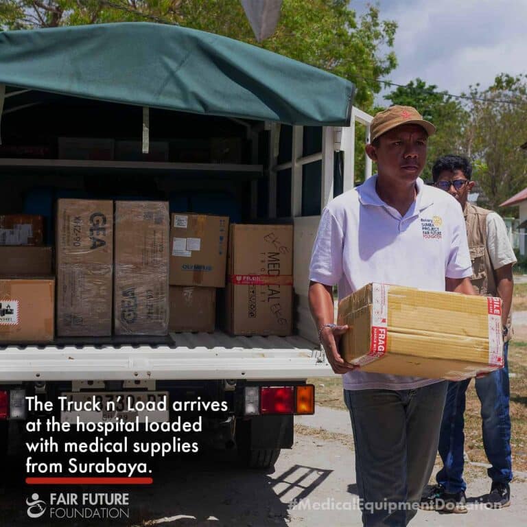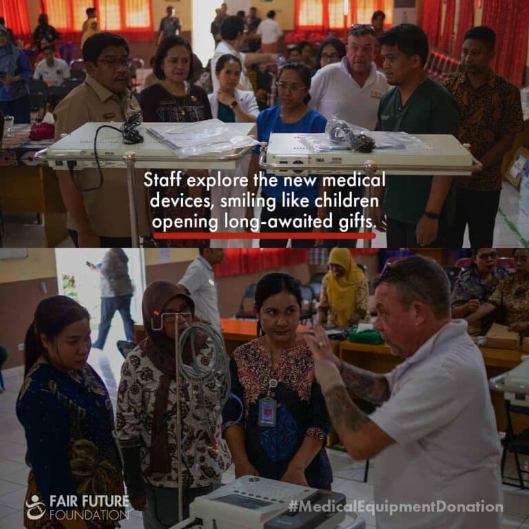 In September, the Fair Future Foundation and Kawan Baik Indonesia, alongside Rotary and Laboratory Without Walls, delivered nearly 300 million IDR in essential medical equipment to Umbu Rara Meha Hospital in Waingapu. This public hospital serves as the primary referral facility for almost 1 million residents across Sumba, an island with scarce medical resources.