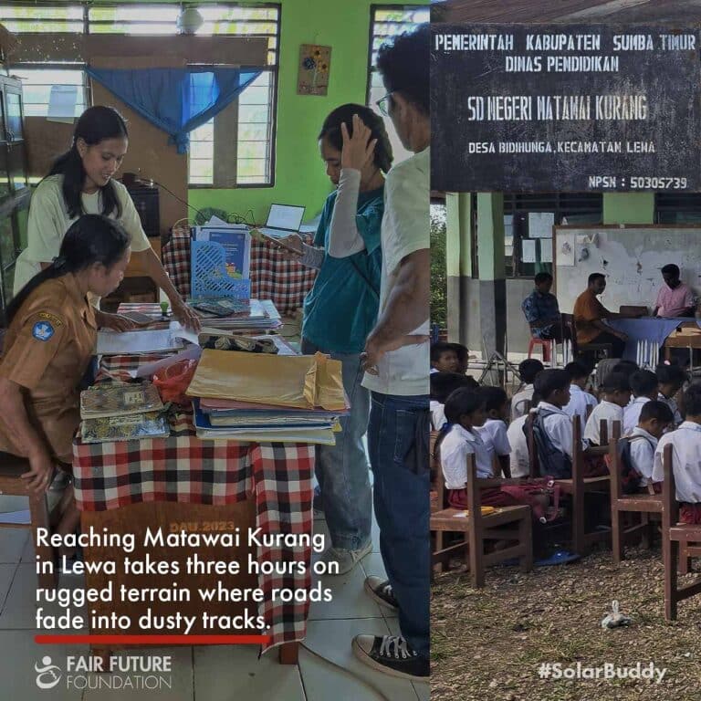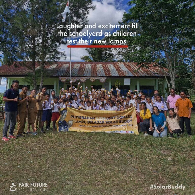 In the remote village of Matawai Kurang, just three hours from the nearest town along challenging tracks, a transformative change is happening. Thanks to the collaborative efforts of the Swiss Fair Future Foundation and Kawan Baik Indonesia, teachers and students at the local SD and SMP schools have successfully assembled 112 SolarBuddy lamps, enabling continued study sessions even after sunset.