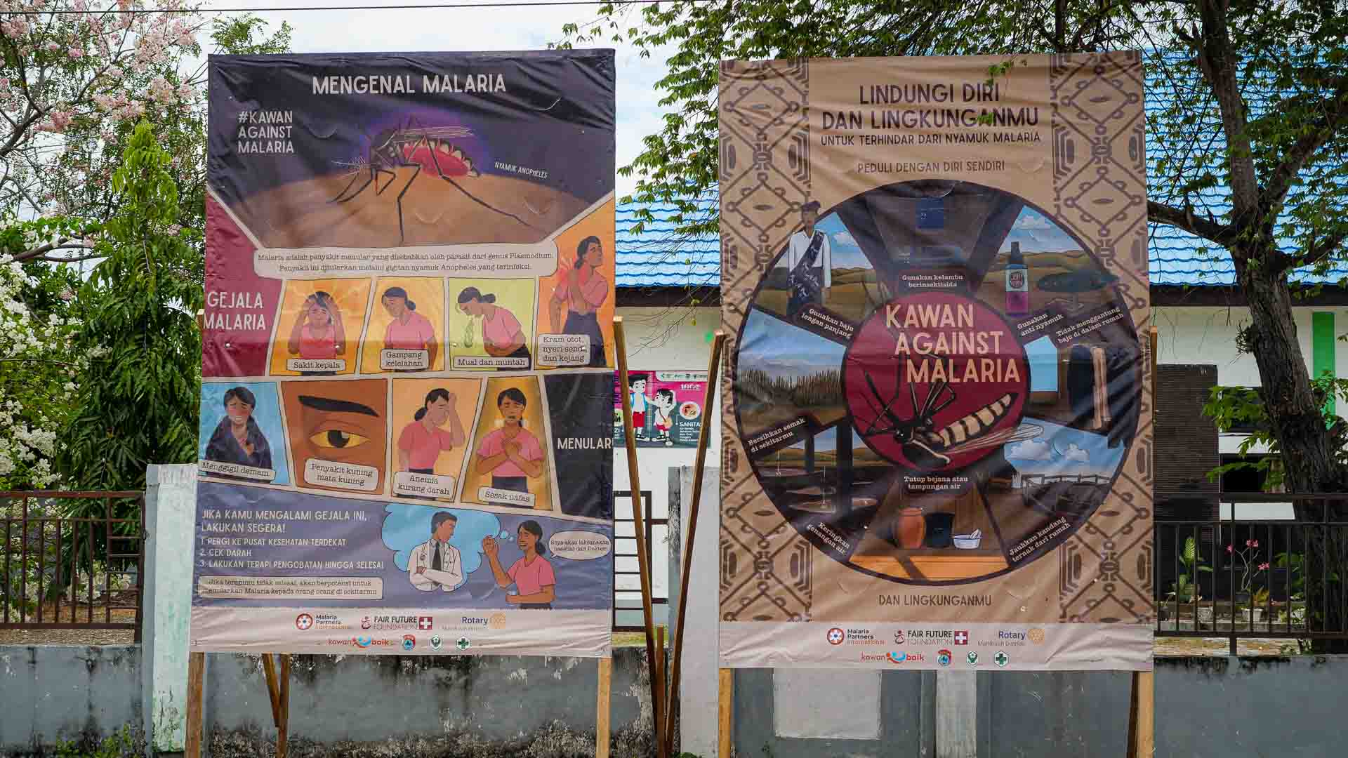 Last week, the Fair Future Foundation, together with Rotary International, Rotary Australia, Malaria Partners International, and Kawan Baik Indonesia, successfully installed 20 educational billboards across East Sumba. These impactful visuals highlight malaria prevention and symptom recognition, providing families with vital knowledge to protect themselves and seek prompt treatment.